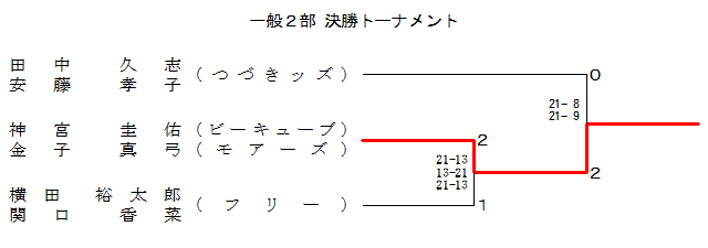 | 一般2部 Bブロック | 阿部 森 | 金子 阿部 | 横田 関口 | 順位 |