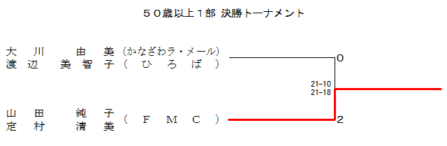 | 50歳以上1部 Bブロック | 黒川 木根渕 | 小林 宮崎 | 山田 定村 | 順位 |