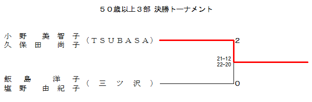 | 50歳以上3部 Aブロック | 小野 久保田 | 平山 木村 | 本間 稲葉 | 船山 野沢 | 順位 |