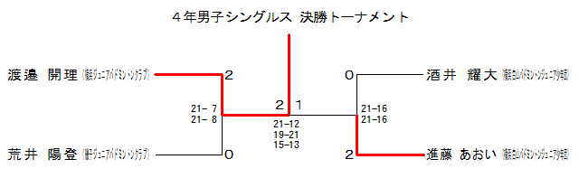 | Žðˆä —s‘å (‰¡•l”’ŽRƒoƒhƒ~ƒ“ƒgƒ“ƒWƒ…ƒjƒA”N’c) | › 12-21 21-17 15-12 | › 9-21 21-11 16-14 | @ | ‚P |