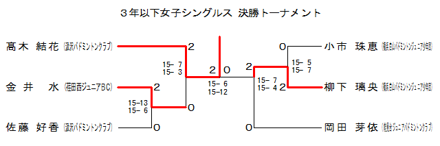 | 木 結花 (汲沢バドミントンクラブ) | ○ 15- 5 15- 0 | ○ 15- 2 15- 0 | ○ 15- 4 15- 3 | 1 | |