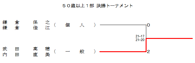 | 50歳以上1部 Aブロック | 鎌倉 鎌倉 | 水口 平野 | 今任 片受 | 浅井 浅井 | 小宮 斉藤 | 順位 |