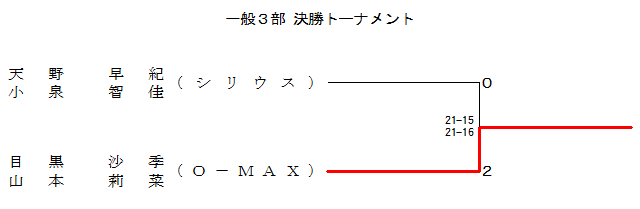 | 目黒 沙季 山本 莉菜 (O−MAX) | ○ 21- 7 21- 3 | ○ 21- 5 21- 7 | 1 |